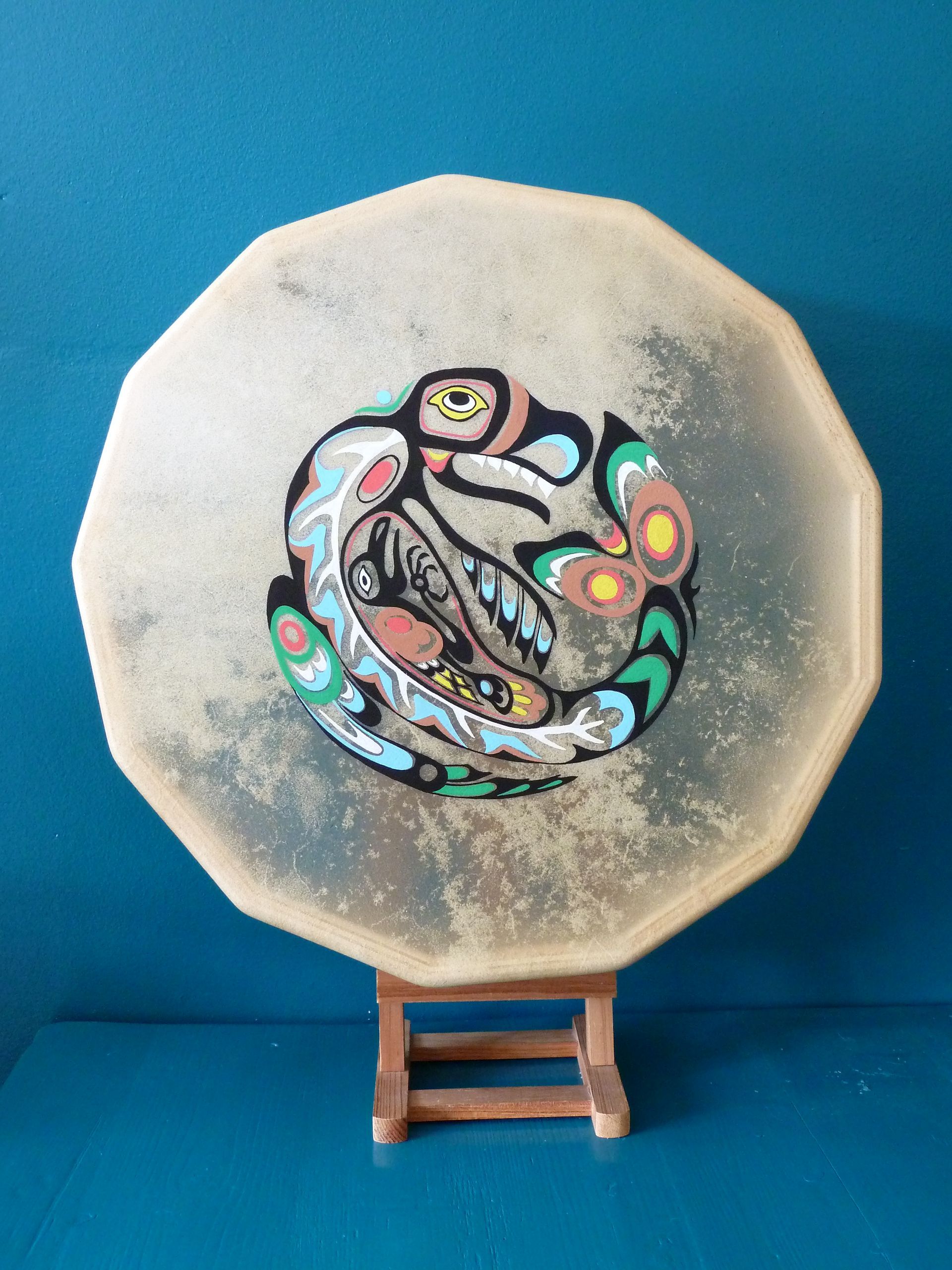 Een Bianche drum is een uniek beschilderd instrument voor verdieping, heling en ceremonies.